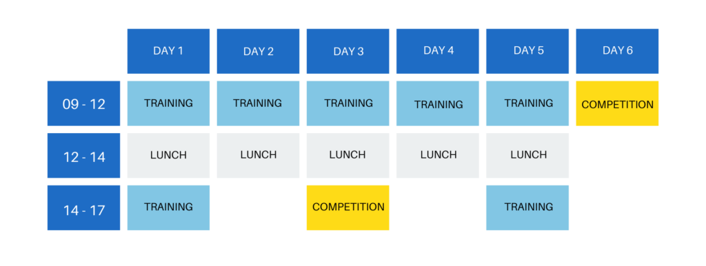Tuffati nelle 14 ore di allenamento e competizioni d'élite nell'arco di sei giorni, per un'immersione più profonda nell'affinamento dei tuoi fondamentali.
