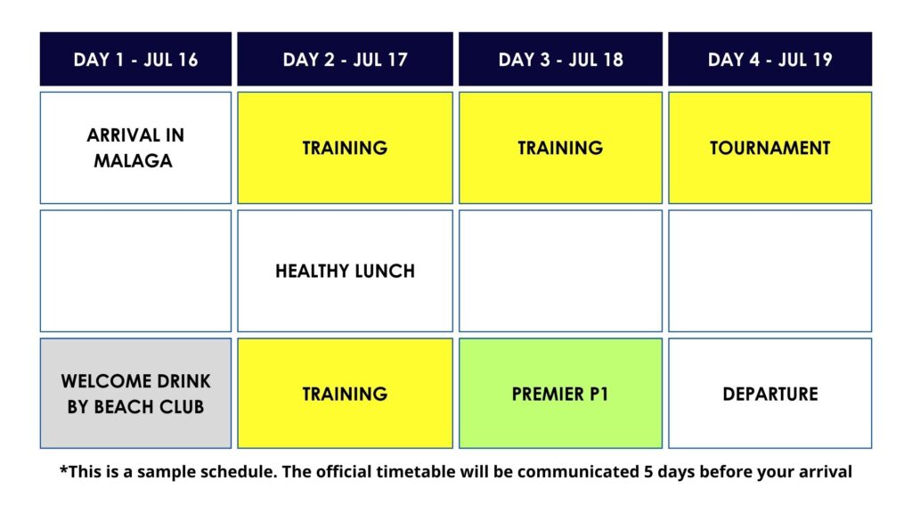 Train with Spain’s top coaches, watch the 4 electrifying P1 Malaga Semifinals, featuring the world’s best players, and relax in stunning seafront resort along the sun-soaked Costa del Sol.